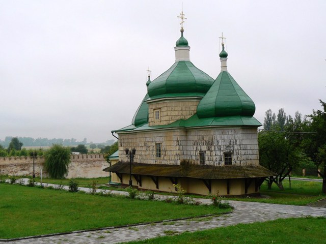 У 1912 році на згадку про трагічну битву на острів Журавлиха було перенесено дерев'яну Михайлівську церкву (XVII століття), у якій Хмельницький молився перед боєм. За проєктом архітекторів Володимира Максимова та Олексія Щусєва було споруджено чудовий храм-пам'ятник Святому Георгія у стилі козацьких храмів з дев'ятьма банями та винесеним назовні іконостасом (художник Іван Їжакевич). На другому поверсі розташована так звана "балконна" церква Бориса та Гліба.