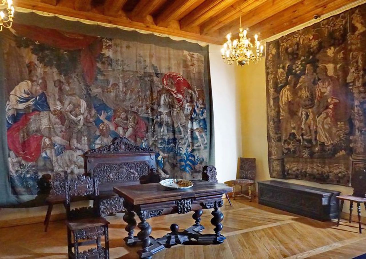 Окрасою колекції є ткані шпалери, виготовлені на індивідуальне замовлення короля Франції Людовіка XVI. Велику цікавість викликає інтер’єр кухні, де зібрано зразки старовинного металевого посуду.
