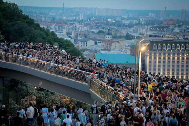 Відкритий до Дня міста Києва у 2019 році, і відтоді одразу став однією з найпопулярніших туристичних атракцій столиці. Залізобетонній міст на чотирьох опорах має довжину 212 метрів (у деяких джерелах – 216), висота найвищої опори становить 32 метри. Міст має звивисте полотно, на кожному з двох основних вигинів облаштовані оглядові майданчики зі скляними вікнами у підлозі та оглядовими біноклями.