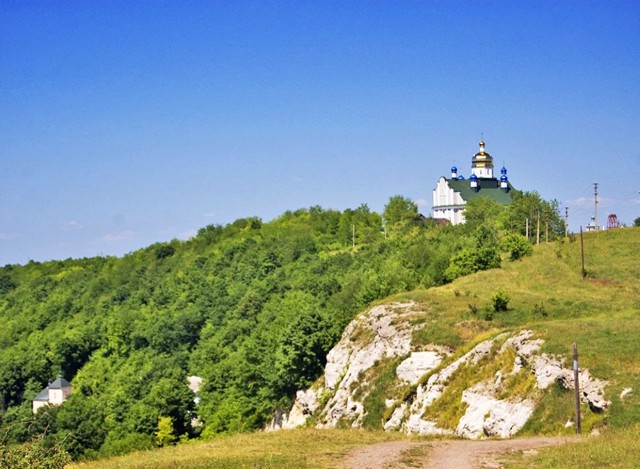 С видовых террас из села открывается фантастическая панорама Днестра, охватывающего гигантской петлёй соседний город Залещики.
