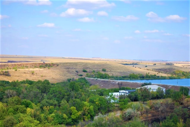 На северном берегу Ольховского водохранилища находится выход скальных пород Донецкого кряжа. Высота ска ...