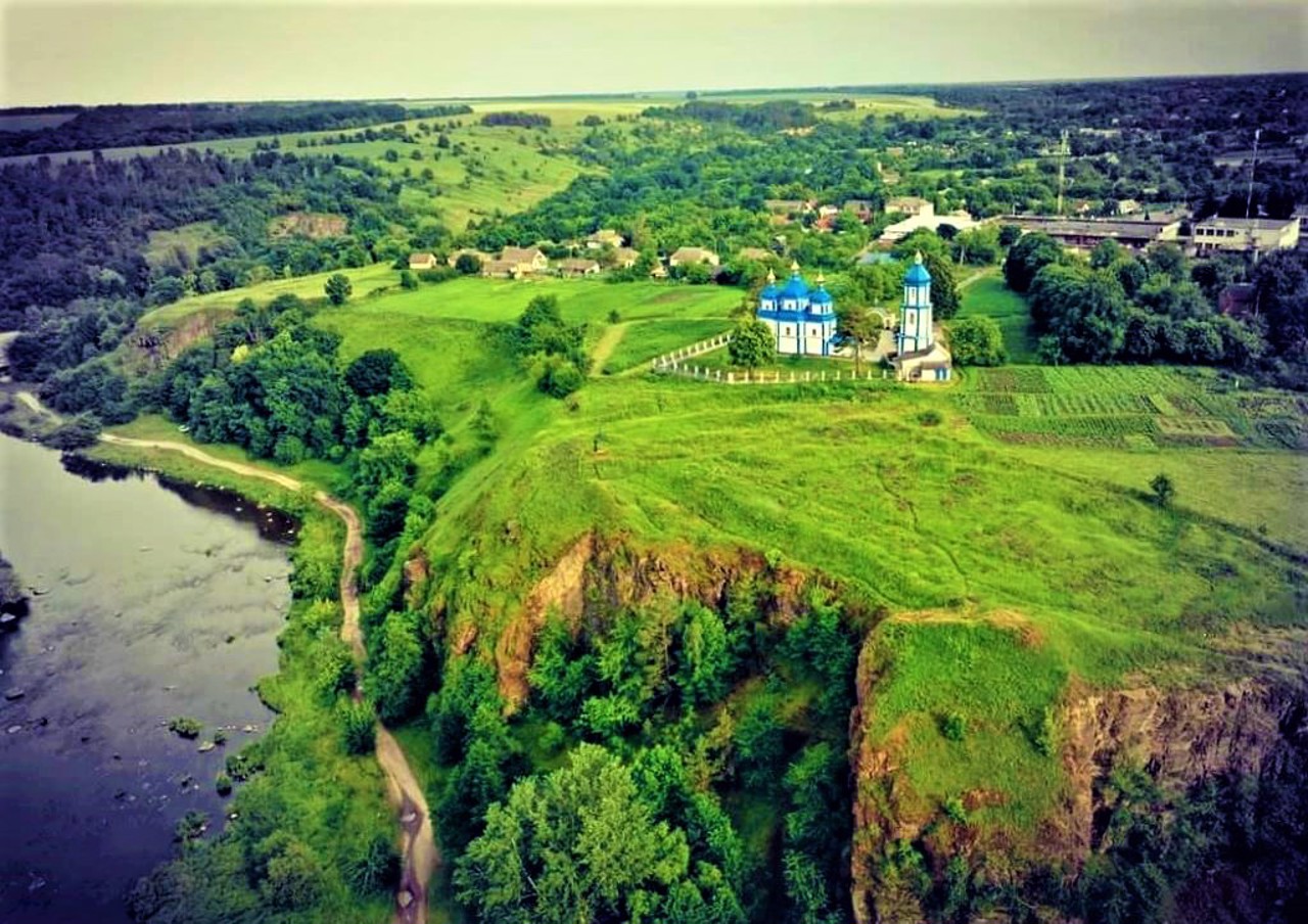 С плато перед церковью открывается самая захватывающая панорама долины Южного Буга с каскадом порогов.