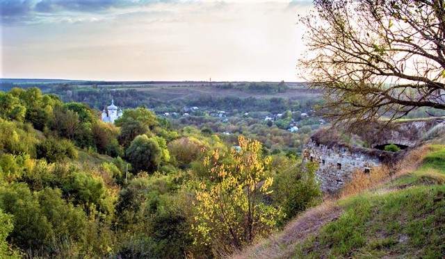 С вершины холма, где размещена Свято-Михайловская церковь, открывается вид на село и руины Зиньковского замка.