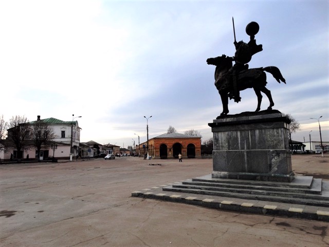 На площади установлен оригинальный конный памятник герою "Слова о полку Игореве" Игорю Святославичу (шар над головой всадника символизирует солнечное затмение, предвещавшее князю поражение в битве с половцами).