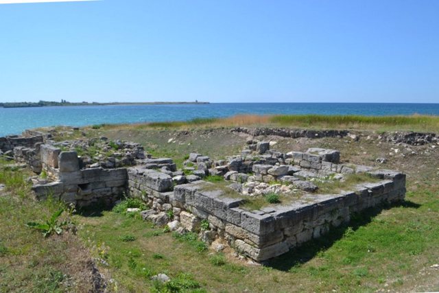 Руины укреплённого античного города Калос-Лимен расположены на берегу нынешней бухты Узкой в Черноморском.