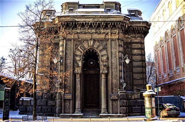 < ...Будівлю караїмської кенаси побудовано в Києві в 1900 році архітектором Владиславом Городецьким коштом "тютюнових королів" Когенів.