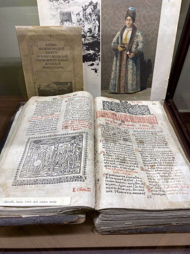 Экспозиция музея исследует историю средневекового памятника на пересечении улиц Константиновской и Хоривой в контексте самоуправления и традиций благотворительности в Киеве. Из наиболее ценных экспонатов – редкая барочная икона "Божья Матерь с младенцем" XVIII века.