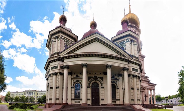 Пять маковок, трехъярусная колокольня с часами - здание решено в неоклассическом стиле с обильным декором. Пожалуй, по размерам и великолепию эта церковь могла конкурировать с главными храмами Екатеринослава (Днепра) - Преображенским, Успенским и Троицким.
