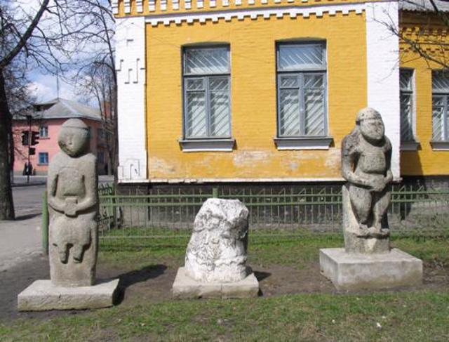 Біля входу в краєзнавчий музей виставлено колекцію "скіфських баб".