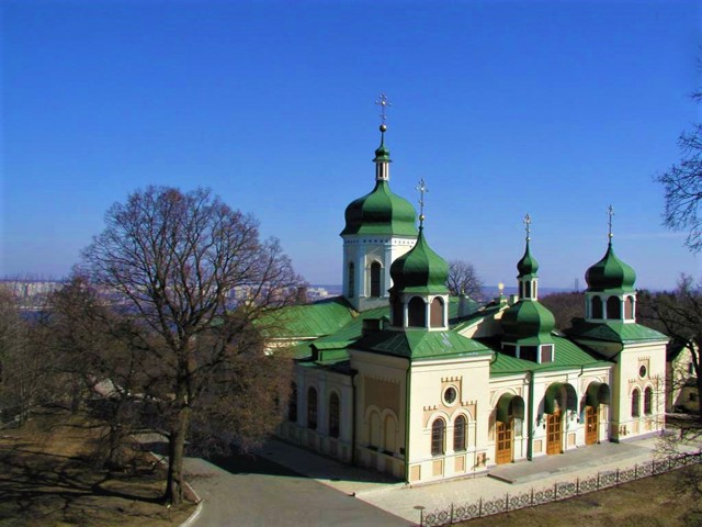 У 1071 році була побудована церква в ім'я архістратига Михайла, яка не збереглася після монголо-татарської навали. В середині ХІХ століття, на найвищій горі Києва, оселився ієромонах Іона. Після неодноразового явлення Господа та Божої Матері він став будівельником та архімандритом Свято-Троїцького монастиря. В обителі було збудовано 2 храми: Покровський (влаштований преподобним Іоною на місці явлення йому Божої Матері) та Свято-Троїцький собор.