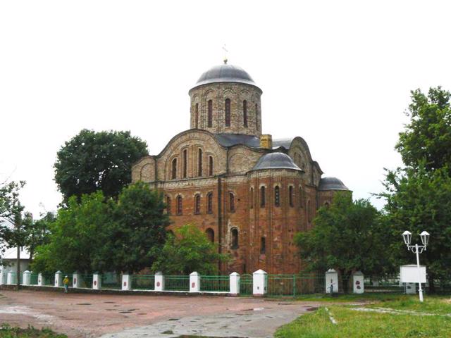 Споруджений в 1190 році князем Рюриком Ростиславовичем на місці дерев'яного храму, збудованого на згадку про загиблого в 977 році князя Олега Святославовича. Будівництвом Свято-Василівського собору керував давньоруський зодчий Петро Милоніг, один із чотирьох архітекторів домонгольського періоду, чиї імена зберегла історія.