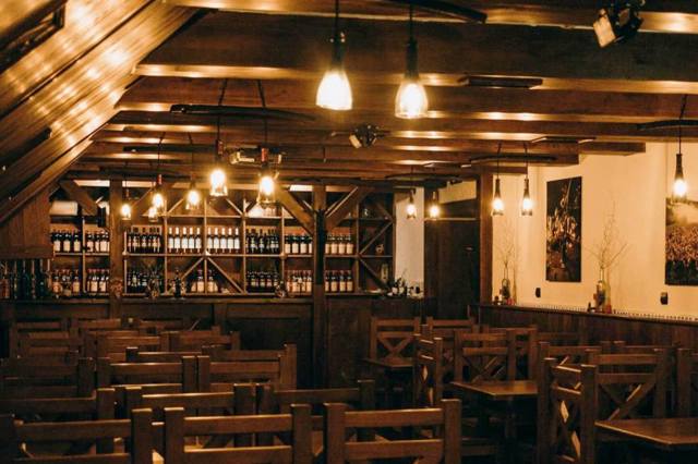 Винодельня оформлена в духе традиционного закарпатского винного подвала: натуральное дерево, спокойные цвета и теплое атмосферное освещение. В зале могут разместиться до 60 посетителей одновременно.