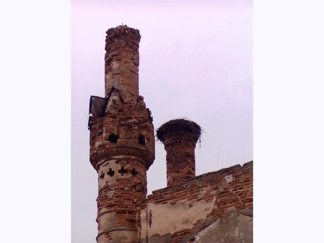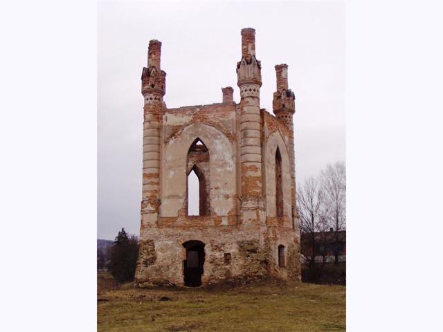 На основі однієї з оборонних веж замку споруджено каплицю у неоготичному стилі. Кожен із її фасадів прорізаний одним вузьким стрілчастим вікном, а розміщені по п'яти зовнішніх кутах високі круглі вежі, розкреслені лінійним рустом, нагадують готичні пінаклі. Інтер'єр каплиці був прикрашений різьбленням по мармуру, виконаним самим господарем садиби, скульптором Томашем Оскаром Сосновським (початок ХІХ століття).