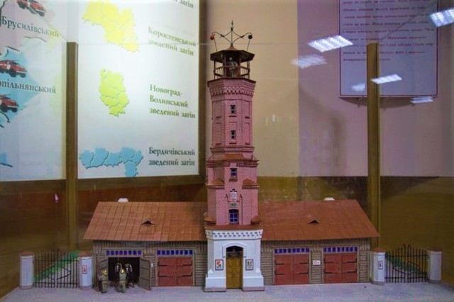 Музей пожежної охорони в Житомирі розташовується в приміщенні пожежної вежі, яка була збудована в 1894 році.