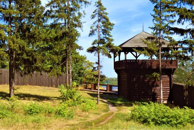 Смотровая площадка "Красный двор" стилизована под крепость времен Древней Руси: деревянные ворота, частокол, сторожевая башня, деревянные помост и дорожка. Отсюда открывается замечательный вид на Днепр, мост Потона, левый берег, Выдубецкий монастырь и музей музей истории Украины во Второй мировой войне.