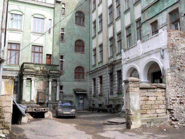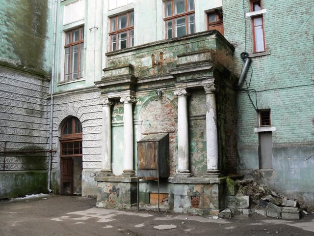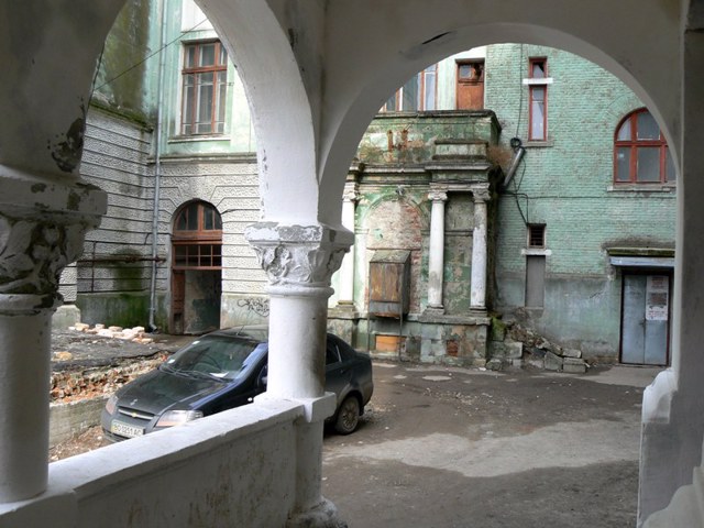 Внутрішній дворик будівлі прозвали "венеціанським" ("італійським") за характерне оформлення з аркадою та порталом з к ...
