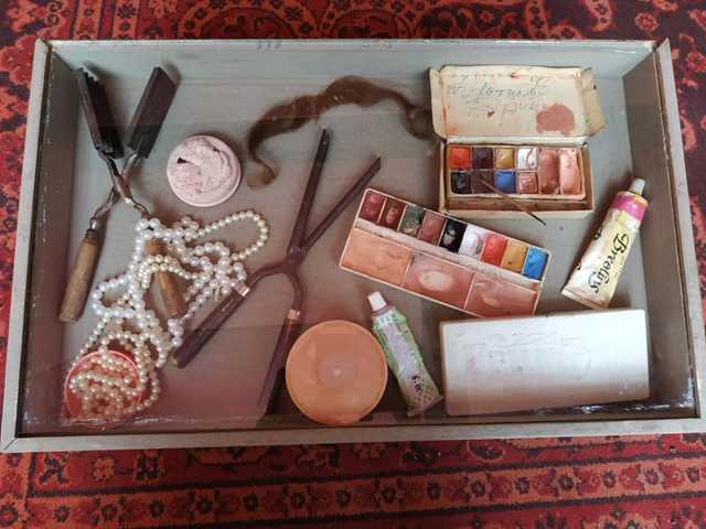 Представлены фотографии, живописные и графические картины, куклы, афиши, эскизы декораций и костюмов, макеты декораций, театральные костюмы, мебель и другое.