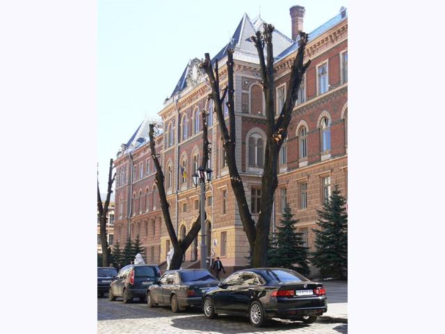 Бывший Дворец юстиции в Черновцах ныне служит помещением областных властей - Черновицкого облсовета и областной госадминистрации.