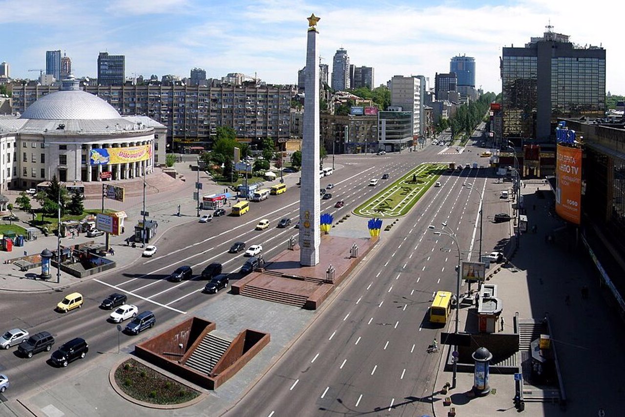 43-метровий обеліск "Місту-герою Києву" встановлений у 1982 році на Галицькій площі (колишня Перемоги, Євбаз), звідки розходяться дві найкрасивіші магістралі столиці України - бульвар Тараса Шевченка та Берестейський проспект.