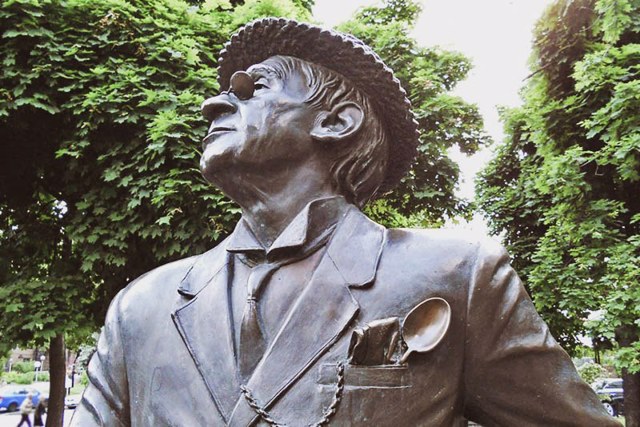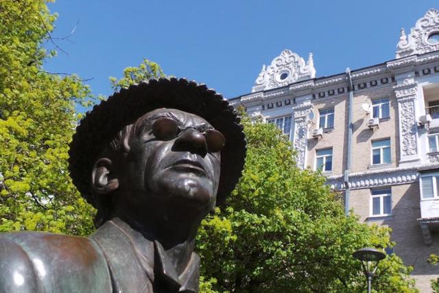 Пам'ятник Михайлу Самуельовичу Паніковському, персонажу роману Ільфа та Петрова "Золоте теля", встановлений у центрі Києва, на початку вулиці Прорізної.