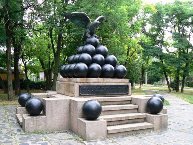 Памятник бригадиру Ивану Горичу - самый необычный в Очакове. На вершине пирамиды из 30 пушечных ядер сидит орел с распростертыми крыльями.