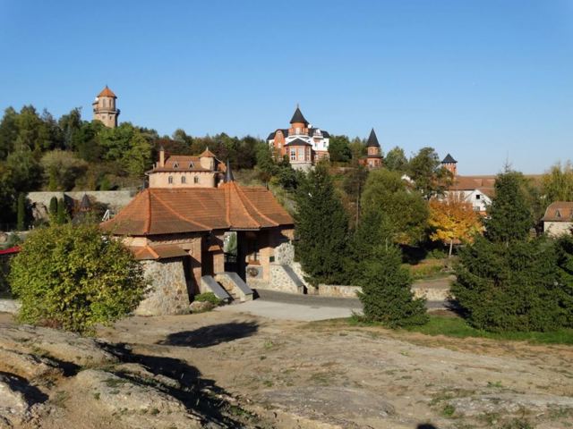 В ландшафт удачно вписаны здания усадьбы семьи Сусловых: жилой дом с семейной часовней, "сторожевая башня", охотничий домик, столярный цех и другие. В декоре зданий часто можно встретить цифру "7", которую И. Суслов считает своим счастливым числом (его инициалы складываются в украинское слово "СІМ", он седьмой ребенок в се ...
