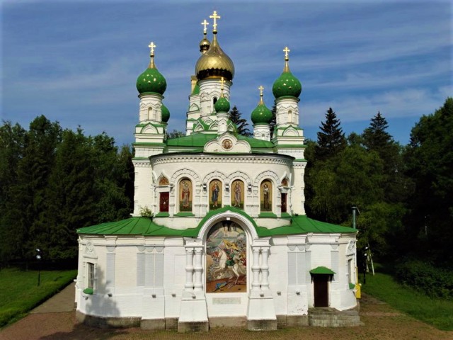Храм на полі Полтавської битви хотів збудувати ще сам Петро I, але Священний Синод затягнув із рішенням, а після смерті імператора ідею забули. Виконати волю Петра пізніше вирішив таємний радник Йосип Судієнко, виділивши зі своїх коштів 100 тисяч рублів, але і він не дожив до початку будівництва, а його гроші міська влада почала витрачати не за призначенням. Лише після особистого втручання царя Миколи I почалося будівництво храму за проєктом архітектора Йосипа Шарлеманя, і в 1856 році Сампсоніївська (Самсонівська) церква була урочисто освячена.