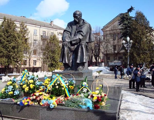Памятник Тарасу Шевченко работы скульптора Николая Невеселого установлен в Тернополе в 1982 году возле областного драмтеатра, носящего имя поэта.