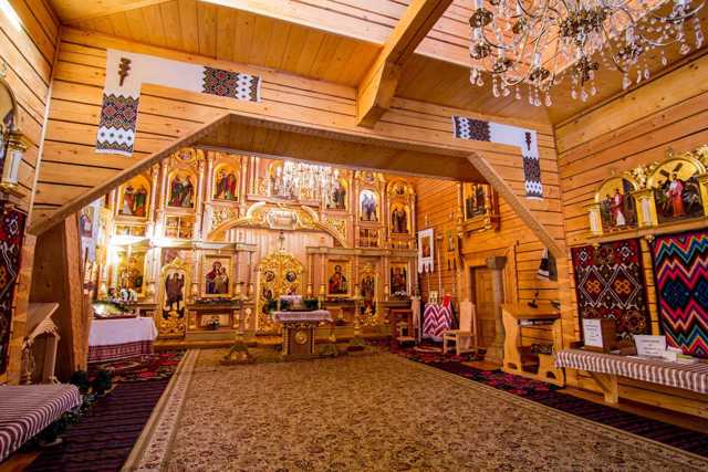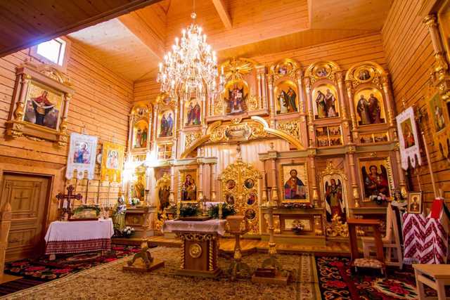 У храмі є різьблений іконостас та унікальна свічка заввишки 2 метри.