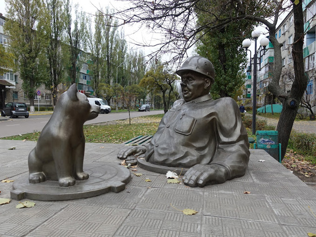 Скульптура сантехніка, що до пояса виглядає з каналізаційного люка, - одна з нових пам'яток Горішніх Плавнів.