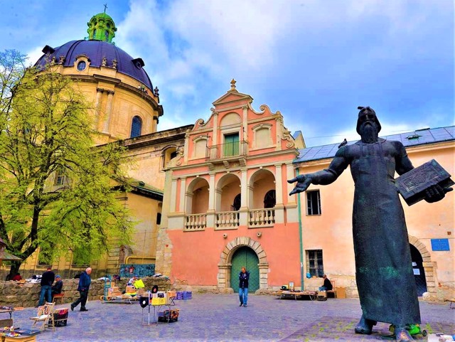 Перед будівлею Королівського арсеналу в 1977 році встановлено пам'ятник першодрукарю Іванові Федорову, відкритий до 400-річчя друкарства на українських землях. Біля пам'ятника розташований букіністичний ринок, популярний у іноземних туристів. Тут збираються торговці старими книгами та предметами старовини.