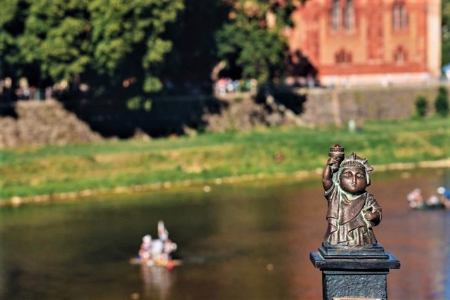 Фигурка высотой 17 санитметров держит светильник, в котором мигает светодиод. Свободка-маяк установлена на перилах моста через реку Уж.