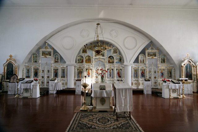Спочатку всі монастирські споруди були дерев'яними, але у ХІХ столітті більшу частину їх замінили кам'яними. Серед них Миколаївська церква (1800 рік) та Варваринська церква (1839 рік), яку зруйнували за радянських часів, але у 1990-х роках вона знову була відбудована. У 1837 році на місці дерев'яної було збудовано нову цегляну дзвіницю заввишки ...