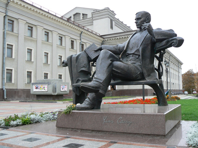 Монумент расположен перед зданием драматического театра. Авторы памятника Уласу Самчуку: Николай Пасечник, Виктор Ковальчук, Татьяна Мельничук, Владимир Шолудько.
