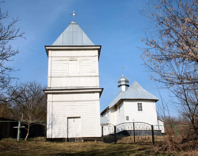 Простая и архаичная архитектура храма уходит корнями к древнейшм образцам украинского деревянного зодчества "хатного" типа. Трехсрубная церковь на каменном основании накрыта скатной крышей с едва выступающим куполком над центром. Рядом расположена такая же архаичная двухїярусная колокольня.