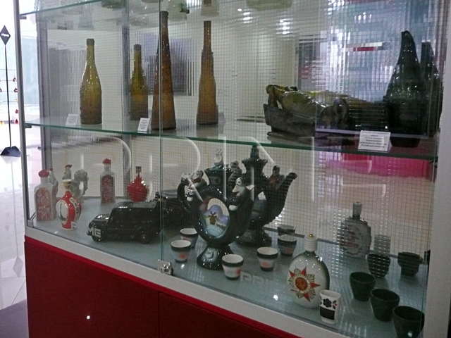 В експозиції представлені незвичайні чарки, вилиті вручну графини, самогонні апарати, старовинні та сучасні пляшки, етикетки та плакати різних історичних епох та багато інших. Більше 1000 унікальних експонатів розкривають історію виготовлення та споживання традиційного для слов'янських народів напою.