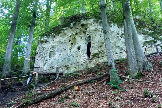 К пещерному комплексу ведет очень крутая тропа, обустроенная деревянным перилом.