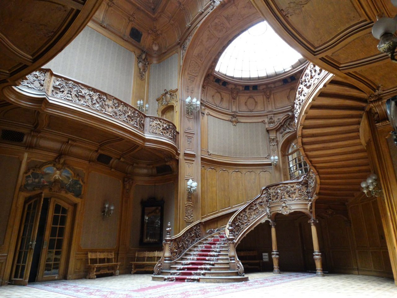 Отлично сохранены елементы интерьера - парадная лестница, лепнина, алебастровые камины, оригинальный прозрачный потолок, изящный балкон - все это делает бывшее казино од ...