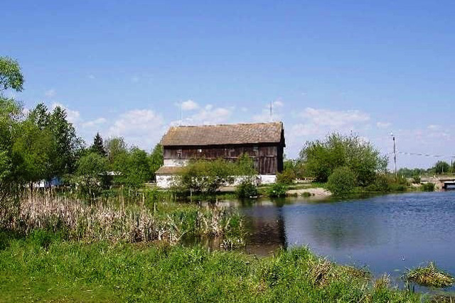 Деревянное трехэтажное здание водяной мельницы на речке Корчице (приток Горыни) построено в Гоще в XVIII-XIX веках.