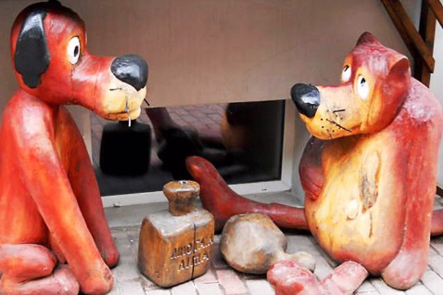 Памятник героям мультфильма "Жил-был пес", снятого по мотивам украинской народной сказки "Сірко" режиссером Эдуардом Назаровым, расположен в центре Киева недалеко от Пейзажной аллеи.