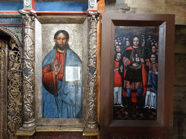 Було перенесено й іконостас - одну з найкращих пам'яток перемишльської школи іконопису. До XVI сторіччя відносяться ікони молитовного ряду, на яких зображені по дві постаті святих та по два євангельські сюжети. Центральною іконою ряду є "Спас у силах небесних", під яким зображена "Таємна вечеря". Ці твори належать пензлям майстрів перемишльської школи іконопису. Царські врата відносять до середини XVII століття.