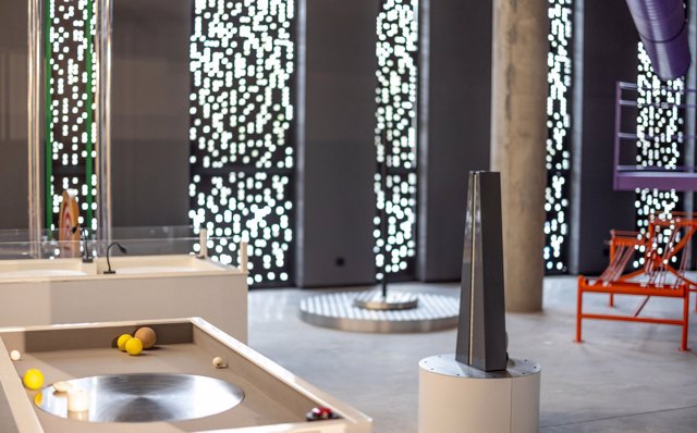 Каждый из девяти экспозиционных блоков музея раскрывает отдельную тему: "Воздух", "Вода", "Акустика", "Оптика", "Электричество", "Наука", "Человек", "Работы", "Формула-1". Более 100 интерактивных экспонатов дают возможность провести эксперименты с пневматическими устройствами и мыльными пузырями, устроить мини-ураган или морской шторм, выработать электроэнергию на мини-электростанции, поиграть на музыкальных инструментах в студии звукозаписи, пообщаться с роботом RoboThespian, поуправлять роборукой KUKA KR 210, побы ...