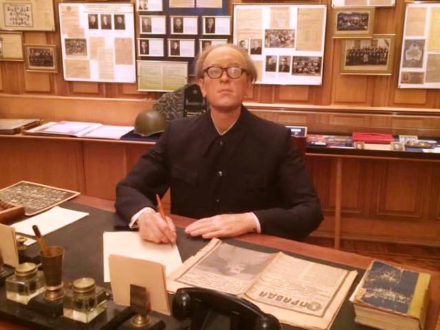 Центральным элементом экспозиции является реконструкция рабочего места финансиста середины XX века с восковой фигурой ...