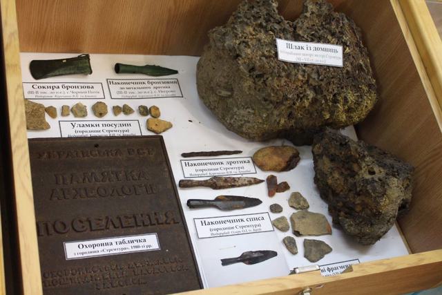 В археологической экспозиции представлены предметы, найденные при раскопках палеолитической стоянки вблизи села Малый Раковец, славянского поселения IX-X веков неподалеку от Иршавы, кургана куштановичской культуры вблизи села Черный Поток и другое.