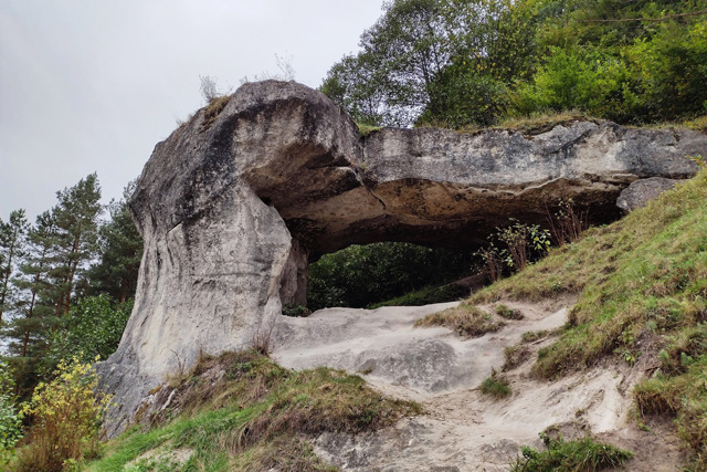 Слева от пещерного комплекса расположен камень "Дырявец" или "Столовый камень", получивший эти названия, поскольку имеет большое сквозное отверстие, а его верхняя поверхность ровная, как стол. Также этот камень-мегалит называют Храмом Солнца. Вероятно, когда-то на нем стоял идол, а у его подножия до сих пор прослеживаются остатки жертвенников, так что камень явно имел культовое предназначение.