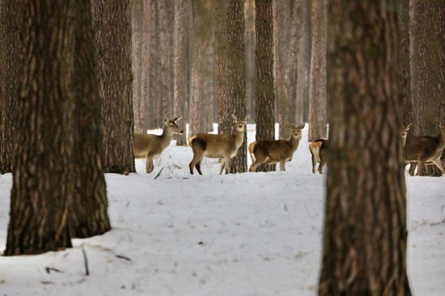 Эта заповедная территория на левобережье реки Десна занимает площадь 14 836 гектаров. Большая ее часть, огороженная забором, представляет собой один гигантский вольер, где в полусвободных условиях проживают около 1500 оленей, а также сотни ланей, косуль, лосей, кабанов, зайцев и другие животные.