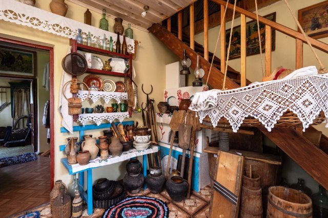 Экспозиция музея насчитывает более 5000 экспонатов, среди которых фотографии и документы, предметы быта (посуда, прялки, люльки), национальные костюмы, вышиванки, полотенца и другое.