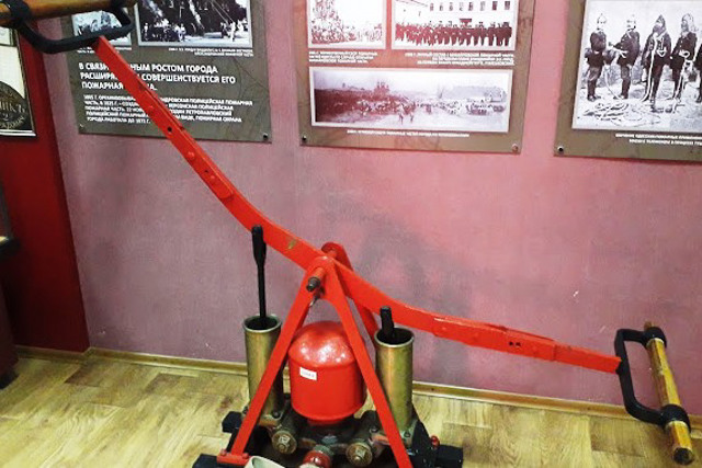 Серед експонатів експозиції музею можна побачити макети старовинної і сучасної пожежної техніки, кінно-бочковий хід, ручний пожежний насос XIX століття, справжнє пожежне обладнання, архівні фотографії XVIII-XIX століть, зменшені копії пожежної техніки.