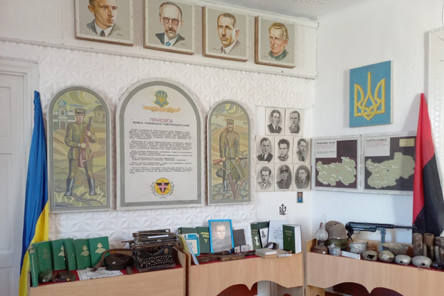 Экспозиция музея представлена в трех тематических отделах. Первый зал посвящен археологии края и истории освободительной борьбы на Подгаеччине. В нем экспонируются сборник воспоминаний бывших воинов Украинской Повстанческой Армии "В рядах УПА", хроника "Незабываемые лето и осень восстания независимости 1991 года", материалы "Отмечание 60-летия". Большую ценность представляет и перевод с русского публицистического произведения Ивана Биласа "Репрессивно-карательная система в Украине в 1917-1953 годах", написанная на основе исследований архивных материалов, в которых раскрывается коварная технология борьбы с национально-освободительным движением ОУН-УПА, которую практиковали органы НКВД.