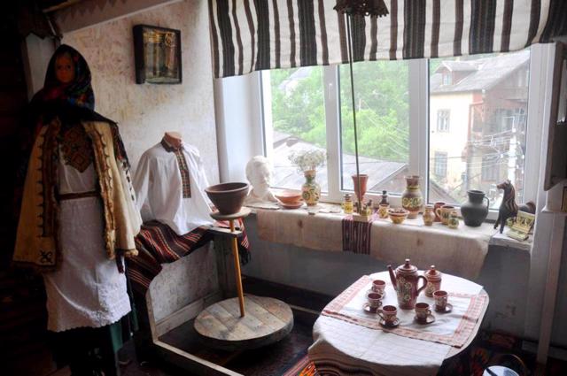 Експозиція відтворює типове помешкання косівчан, представляє традиційні ремесла регіону: столярство, ткацтво, солеваріння, кераміку, вишивку.